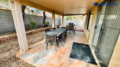 Welcome! Relax and enjoy Vegas!This stunning property is the perfect place to unwind and enjoy all that Vegas has to offer. With 3 bedrooms and 2 bathrooms, this home is perfect for business or groups of friends. Comes with a BBQ, outdoor dining, and a patio to relax. Need to get some work done? The dedicated workspace is perfect for those who need to stay connected. Minutes away from the Las Vegas Strip, this home is the perfect base for your Vegas adventure. Book your stay now!