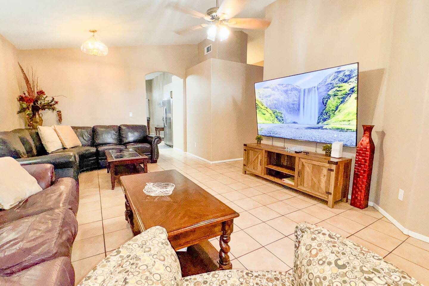 Welcome! Relax and Enjoy Vegas! This stunning property is located in the heart of Las Vegas, NV. 89123 and is the perfect vacation home for those looking for a luxurious and comfortable stay. With three bedrooms and two full bathrooms, this home can accommodate up to six guests. The top amenities include a BBQ grill, backyard, dedicated workspace, outdoor dining area, and outdoor furniture. Book now and experience a truly fabulous stay in Las Vegas! Enjoy all Vegas has to offer! We pride ourselves on providing our guests with the best amenities to ensure a comfortable and enjoyable stay. Our bedrooms are equipped with bed linens, room-darkening shades, extra pillows and blankets. The bathrooms come with a bathtub, body soap, hair dryer, hot water, and shower gel. In the kitchen, you will find all the necessary appliances and cookware to prepare delicious meals during your stay. The living room features TV, wifi, ceiling fan, smoke alarm, and sound bar. Other amenities include air conditioning, heating, iron, and hangers. Don't just take our word for it! Here are some reviews from our previous guests: 1. "This home is absolutely stunning! The backyard is perfect for BBQs and outdoor dining. The bedrooms are spacious and comfortable. I would definitely stay here again!" - John D. 2. "The location is perfect, close to all the attractions that Las Vegas has to offer. The house is beautifully decorated and has everything you need for a comfortable stay. Highly recommend!" - Sarah M. 3. "The cleanliness of the house was impressive. The amenities were top-notch and the beds were extremely comfortable. I would definitely recommend this property to anyone visiting Las Vegas." - Michael P. Fabulous Home, Relax and Enjoy Vegas! features three bedrooms, making it the perfect vacation home for families or groups of friends. The master bedroom comes with a California King-size bed, while the other two bedrooms have Queen-size beds. All bedrooms are equipped with comfortable bedding and room-darkening shades for a good night's sleep. One of the highlights of Fabulous Home, Relax and Enjoy Vegas! is the backyard. It features a BBQ grill, outdoor dining area, and outdoor furniture, making it the perfect spot for entertaining guests or enjoying a meal outdoors. The dedicated workspace is perfect for those who need to get some work done during their stay. Our property is Covid Sanitation Compliant, ensuring that our guests can have a safe and worry-free stay. We also offer high-speed wifi and parking for up to 2 cars. Located in the heart of Las Vegas, NV. 89123, this home is just a short drive away from all the attractions that Las Vegas has to offer. From outdoor adventures to national parks, there is something for everyone. Make sure to check out the following social media hashtags for your stay in Vegas: #outdoors #outdooradventures #getoutside #roadtrip #solitude #mystery #beautiful #happy #travel #hike #memories #familytime #summer #vacations #nationalparks #explore #nature #photography. 1. Top 10 attractions within 60 minutes: - Red Rock Canyon (25 min, 17 miles) for stunning hikes and rock formations - Hoover Dam (45 min, 34 miles) for a marvel of engineering and breathtaking views - Valley of Fire State Park (1 hr, 55 miles) for ancient petroglyphs and fiery red rocks - Lake Mead (35 min, 26 miles) for boating, fishing, and swimming - Mount Charleston (45 min, 38 miles) for skiing, snowboarding, and hiking - Grand Canyon West (2 hr, 128 miles) for a jaw-dropping natural wonder - Death Valley National Park (2 hr, 125 miles) for otherworldly landscapes and stargazing - Zion National Park (2 hr, 160 miles) for towering cliffs and emerald pools - Bryce Canyon National Park (4 hr, 270 miles) for hoodoos and starry skies - Antelope Canyon (4 hr, 280 miles) for a slot canyon photo op like no other 2. Airports within 60 minutes: - McCarran International Airport (12 min, 6 miles) for domestic and international flights - Henderson Executive Airport (20 min, 12 miles) for private and charter flights - North Las Vegas Airport (30 min, 16 miles) for general aviation and air tours 3. Top 3 restaurants: - Raku (15 min, 7 miles) for authentic Japanese cuisine and sake - Lotus of Siam (15 min, 6 miles) for award-winning Thai food and wine - Esther's Kitchen (15 min, 7 miles) for seasonal Italian dishes and cocktails 4. Top 3 beaches within 60 minutes: - Lake Mead National Recreation Area (35 min, 26 miles) for sandy coves and clear water - Boulder Beach (35 min, 26 miles) for a family-friendly beach with picnic areas - Willow Beach (50 min, 45 miles) for a secluded beach with kayaking and fishing opportunities Dear Potential Guests, We are thrilled to welcome you to Fabulous Home, Relax and Enjoy Vegas! Before booking, please be aware of the following rules and policies: **No Parties or events allowed** - Ring cameras (2) are in place on the exterior of the home. - Rental agreement is sent for review and acceptance by guest prior to occupancy. - No smoking is allowed inside the house or on the property. - No pets are allowed on the property. - Quiet hours are from 10pm to 8am. Please be respectful of our neighbors and keep noise levels down during these hours. - Maximum occupancy is 8 guests. Any additional guests must be approved by the homeowner. - Please do not move any furniture or decor without prior approval from the homeowner. - Managed thermostat temperatures set through cooperation with guests. - Cleaning is included in the cost of your reservation. However, we reserve the right to charge for cleaning when circumstances warrant doing so. - Any damages or excessive cleaning required will result in additional fees. We hope you have a wonderful stay at Fabulous Home, Relax and Enjoy Vegas! Book now to secure your spot and experience the ultimate Las Vegas vacation!